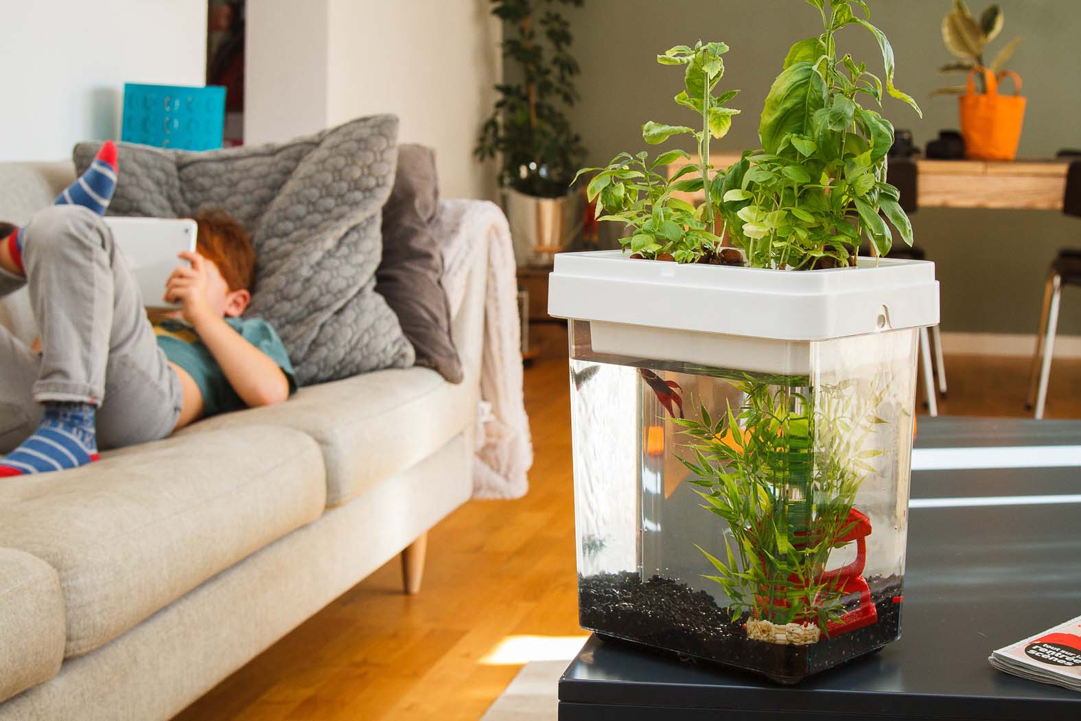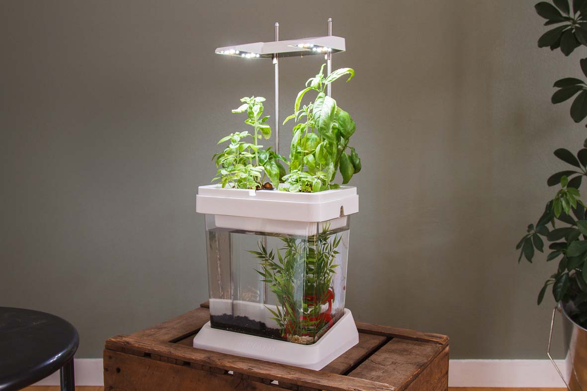 CitizenFarm propose l’« Ozarium », un aquarium original basé sur la technique de l’aquaponie qui permet de faire pousser très simplement fruits et aromates (fraises, tomates cerises, basilic, ciboulette, menthe…) presque sans entretien.