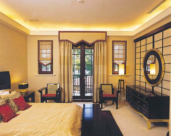 Dans cette chambre, d’inspiration japonaise, le contraste des bois foncés avec les murs et les tissus clairs crée une atmosphère douce et chaude. L’utilisation de panneaux coulissants en papier japonais et d’éclairages indirects renforce le charme asiatique de cette ambiance tamisée.Lire la suite