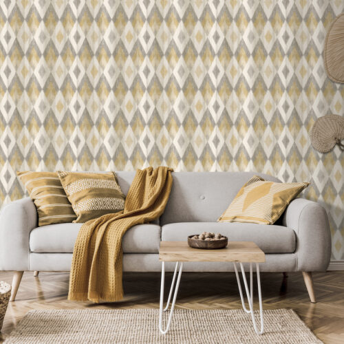 En décoration, le gris qui apporte calme et sérénité se révèle grâce à un jaune lumineux pour une ambiance positive et un intérieur apaisant. Un duo qui s’harmonise avec d’autres nuances telles que le blanc, l’écru, le noir mais aussi avec des matériaux bruts comme le bois ou la pierre. En 2021, osez cette combinaison inédite et retrouvez notre sélection de papiers peints pour transmettre ce message dans votre intérieur.