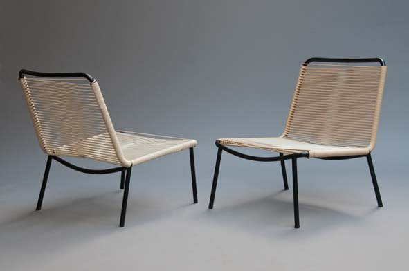 Paire de chauffeuses 151, André Monpoix, éditée chez Meubles TV en 1953/1954, métal laqué et isogaine, 67x65x58 cm. Lire la suite