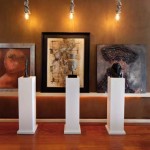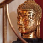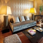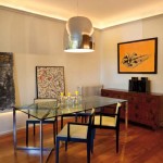 Pour la décoration des autres pièces, Pierre Henri Bouchacourt a opté pour mélange d’éléments orientaux et occidentaux. Les murs sont peints en blanc pour laisser les œuvres d’art apporter des touches de couleur. Au sol, un parquet en bois massif du Brésil à larges lattes a été posé sur l’ensemble de l’appartement. Un couloir à l’image d’une galerie d’art met en lumière les collections de sculptures, d’objets et de tableaux des propriétaires. Les tableaux sont posés sur une cimaise à 60 cm du sol et les sculptures trônent sur trois stèles à l’éclairage personnalisé. Le couloir mène à la pièce principale divisée en deux parties distinctes. Dans la salle à manger, le mobilier contemporain est harmonieusement sobre : table en verre et inox (Gallotti&Radice), fauteuils (PHS) et suspension cloche en verre Murano. Dans le salon, les objets orientaux côtoient un mobilier occidental design : grand plateau d’offrande orné de calligraphies faisant office de table basse (Asiatides Import), tabourets bas en bois massif, canapé d’angle (Gilles Nouailhac) et tapis (Toulemonde Bochart). De nombreuses niches ont été créées afin de mettre en avant les œuvres d’art. Les corniches lumineuses quant à elles apportent un éclairage indirect. L’espace donne sur un balcon, les grandes fenêtres apportant de la luminosité à cette belle pièce à vivre.