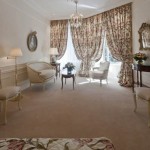 Avec ses 320 m², la suite « Impériale » occupée récemment par David Beckham est la plus grande du Bristol. La salle à manger, au parquet Versailles, donnant sur le magnifique jardin à La Française, peut recevoir jusqu’à douze convives. Le salon adjacent, dont les meubles proviennent de la prestigieuse maison française Taillardat, est décoré de précieux tissus aux tonalités douces de la maison Canovas, offrant ainsi une ambiance conviviale dans le plus pur style parisien. La chambre principale, inondée de lumière naturelle, est décorée de tissus fleuris de chez Canovas et Veraseta. Disposant d’un coin salon et d’un grand dressing, cette chambre de 30 m² permet de profiter d’un moment de détente absolu. Une grande salle de bains de 23 m² donnant sur le jardin vient compléter cette suite d’exception. En marbre rose Aurora, sublimée par des cabochons gris bleu de Savoie, dotée d’une douche-hammam et d’une baignoire, elle procure une véritable parenthèse de bien-être. Une seconde chambre d’une superficie de 30 m², spacieuse et lumineuse, habillée de tissus bleu ciel fleuris de chez Canovas, est dotée d’un coin salon. Décorée de gravures anciennes et de toiles de maîtres, elle offre une vue agréable sur la cour fleurie. Cette chambre prolongée d’une salle de bain de 20 m², bénéficie également de la lumière du jour. Elle est composée d’une baignoire, d’une douche séparée et de doubles vasques.