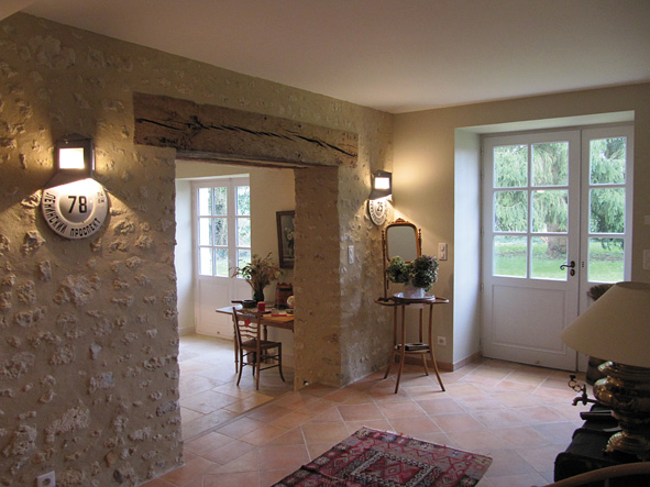 Pour donner l’accès à l’entrée, une percée a été faite dans le mur porteur qui a été décroûté pour faire apparaître la pierre. Lire la suite