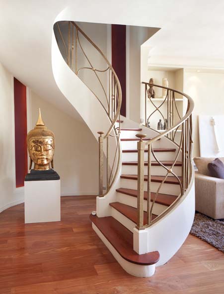 Un grand escalier de style Art Déco en bois exotique permet d’accéder à l’étage supérieur. Lire la suite