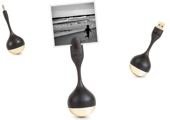 “La recherche de mouvement et d’équilibre est fondamentale dans mon travail. L’oscillation continue et infinie me fascine ” explique Constance dont les recherches trouvent des applications multiples en scénographie, design d’objets et vidéos. Son travail s’articule autour d’une réflexion sur l’illusion visuelle et la surprise. L’originalité de ce support de stockage, c’est qu’il se présente sous la forme d’un objet de décoration. Posé sur une surface plane, il fascine par ses mouvements gracieux. La clé USB Culbuto se compose d’une base en métal sphérique surmontée d’un tube en silicone qui se termine lui-même par un connecteur USB 3.0. À son sommet, le capuchon de protection de la clé dispose d’une fente permettant de glisser une photo ou une carte de visite. Le logiciel Private-Public de LaCie permet de protéger les données confidentielles sauvegardées. En cas de perte, de vol ou d’accès non autorisé, les fichiers restent sécurisés grâce à une protection par mot de passe. De plus, la clé est équipée du logiciel Backup Assistant de LaCie pour la sauvegarde automatique des données. Disponible en versions 16 Go et 32 Go à partir de 49,99 €.