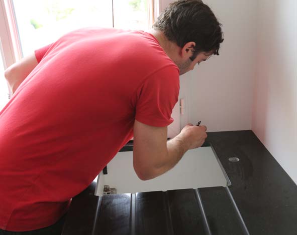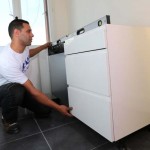 Placé sous le four, le réfrigérateur est encastré dans le meuble et fixé sur celui-ci. Une fois, en place, il ne reste plus au poseur qu’à ajuster l’ouverture de la porte.