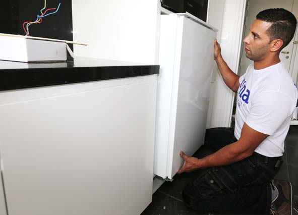 Placé sous le four, le réfrigérateur est encastré dans le meuble et fixé sur celui-ci. Une fois, en place, il ne reste plus au poseur qu’à ajuster l’ouverture de la porte.Lire la suite
