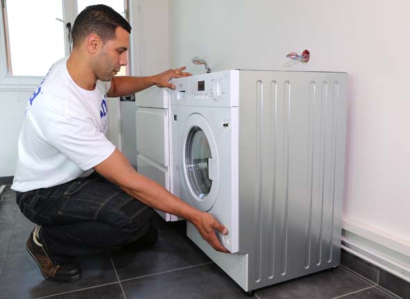 Lors de l’élaboration du plan de cette cuisine, Ixina a opté pour un lave-linge séchant Whirlpool un appareil double fonction, astucieux et pratique compte tenu de la petite surface de la pièce. Intégré entre deux meubles, le poseur a volontairement laissé quelques millimètres de battement de chaque côté de l’appareil afin de pouvoir le sortir et le rentrer facilement en cas de problème (panne, fuite d’eau…). Il faut aussi savoir que les vibrations engendrées lors de l’essorage peuvent endommager les champs laqués des meubles, d’où la nécessité de laisser ces espaces. Lire la suite