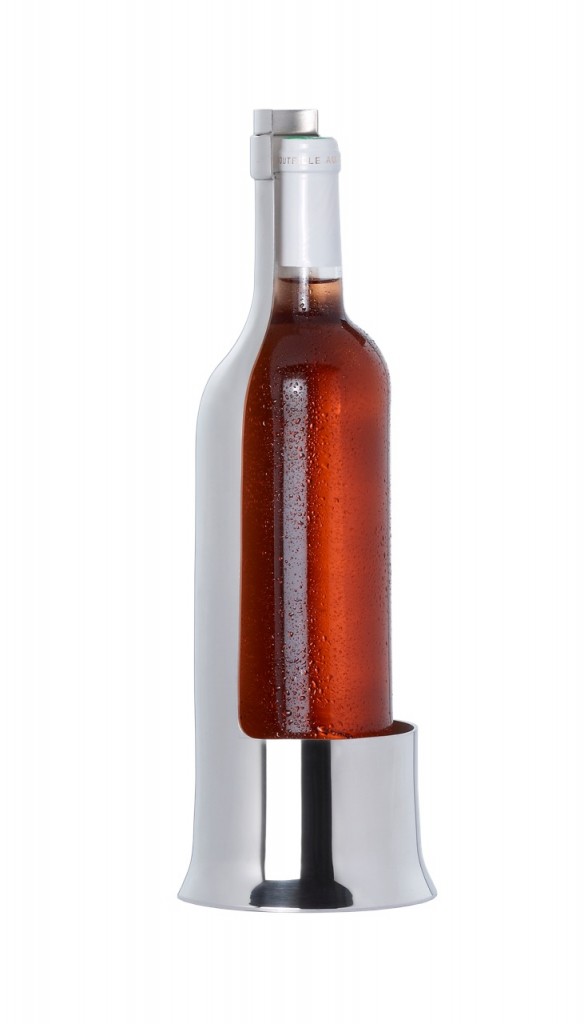 Un support spécifique en étain fourni pour chacune de ces deux créations se loge sous la bouteille : placé au préalable au congélateur, ses qualités thermiques lui permettent de rafraîchir délicatement la bouteille, sans anesthésier pour autant les arômes du vin. Il préserve la fraîcheur pendant plus d’une heure et ne provoque pas de condensation, ni d’écoulement de gouttelettes d’eau sur la nappe.