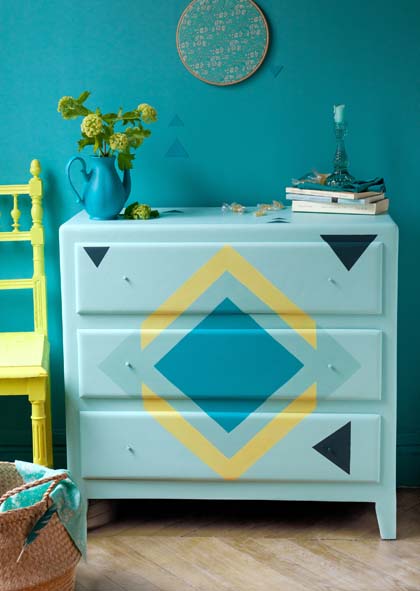 - Pour être sûre de choisir la bonne couleur pour votre projet déco, rien de tel que de la tester… Pour cette commode, nous avons utilisé le testeur 250 ml, 1825 Peinture Théodore (11 €) disponible en acrylique mat velours. C’est idéal pour se projeter, tester l’application et la qualité de la peinture.