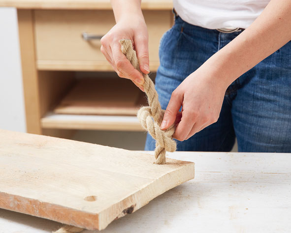 Pour réaliser cette jolie table de chevet, il faut du bois et de la corde et un peu de temps ! (1 h 30 environ).
