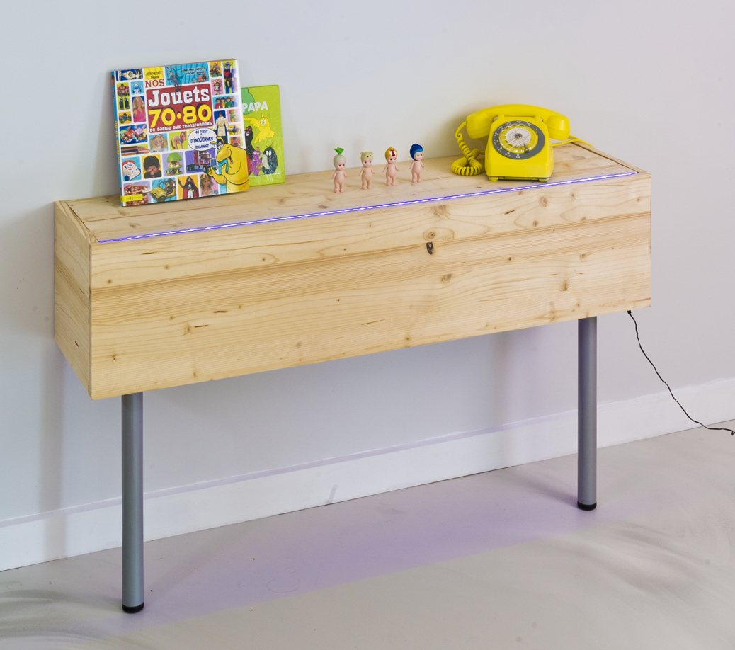 - Placer les côtés encollés contre le devant de la console