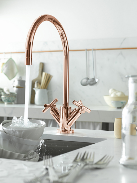 Les robinetteries Tara, Tara Classic et le mitigeur monocommande Pivot seront disponibles dans cette nouvelle finition. Grâce aux caractéristiques particulières de leur surface brillante, les robinetteries en or rose poseront désormais des accents pleins de style dans l’architecture intérieure des cuisines contemporaines.