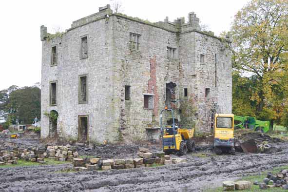 Le bâtiment en cours de restauration. Les maçons ont utilisé les pierres d’origine pour reconstruire une partie de l’édifice, le reste venant d’une carrière proche. Les murs épais de plus de 2 mètres étant très humides, il a été nécessaire d’étudier une consolidation spécifique, les mortiers à la chaux n’arrivant pas à prendre. Lire la suite