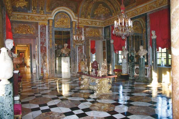 Louis XIV : sculptures, marqueterie du sol inspirée de l’antique, plafond peint à la gloire, entouré d’allégories qui évoquent l’histoire d’Hercule. Lire la suite