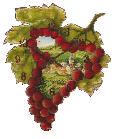 Horloge « Grappe de raisins » L.50 cm x H.60 cm, 105 € (Country Corner).