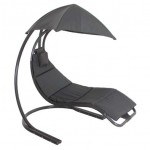 Hamac hybride « Brasilia » à structure en acier traité époxy et texaline, 115 x 179 x 170 cm. Coussinage et pare-soleil polyester amovible. 249 € (Hespéride).