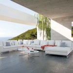 Collection de modules de canapés pour l’extérieur » Zendo « . Structure en aluminium anodisé. Fauteuil Club 1 770 €. Canapé 2.5S 3 795 €. Canapé 3 places 4 585 € (Alexander Rose).