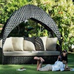 Lit de jour « Océan » avec toit avec coussins. H 2,20 m x l 2,25 m x profondeur 1,15 m. 3 490 € (Alexander Rose).