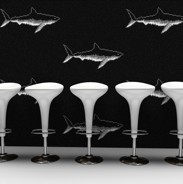 Mosaïque REQUINS en verre. De 158 à 1044 € HT le m2 (Asarota)
