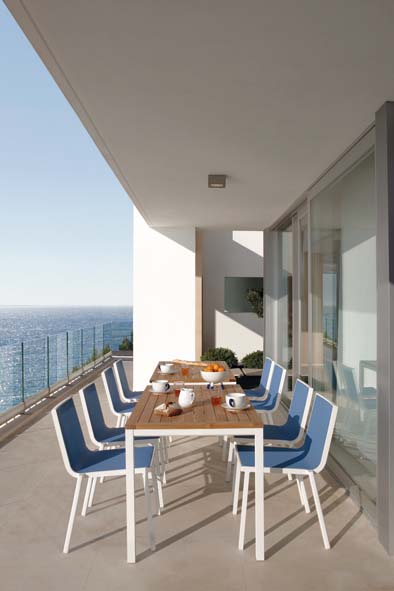 Table de repas rectangulaire Quarto. Structure en aluminium thermolaqué white. Plateau en teck. H 75 x L 75 x P 130 cm, à partir de 1 220 €Lire la suite