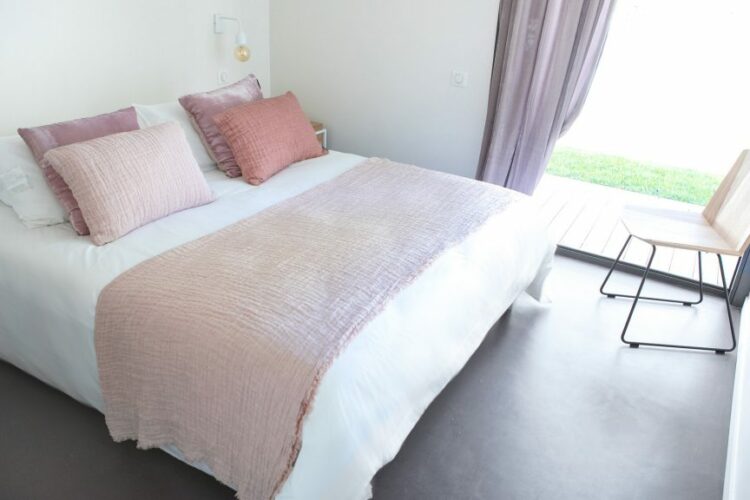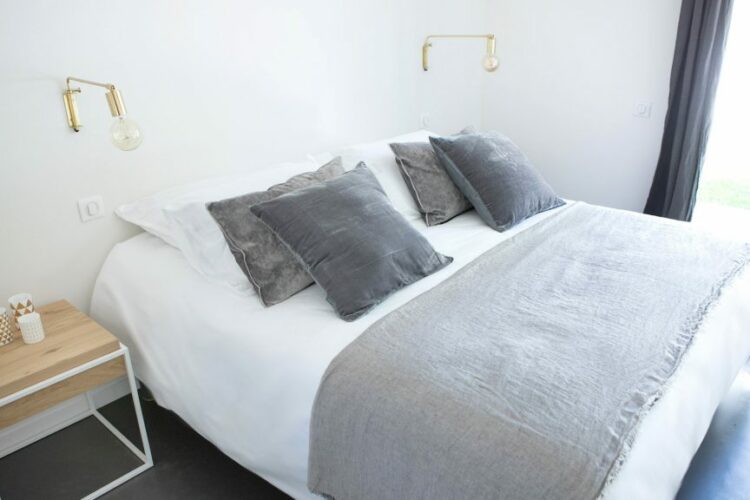 Les chambres, chacune avec leur propre décor, offrent des espaces intimes et chaleureux pour se détendre. Les chambres d’Argent, Graphite, Pierre de Lune et Poudrée disposent d’une baie vitrée donnant sur le jardin, d’un grand placard de rangement, d’une télévision et d’un accès wifi. La Suite Émeraude, située dans une dépendance extérieure, offre une terrasse privée aménagée avec un coin détente comprenant un canapé et une petite table face au jardin, ainsi qu’une salle de bain contemporaine et des WC privés.