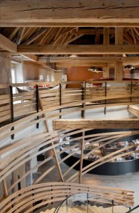 Ici, Patrick Jouin et Sanjit Manku ont retranscrit leur vision d’un lieu de l’élevage équin et historique dans un esprit noble et brut à la fois. Les matériaux choisis sont volontairement peu nombreux. Le bois brut, le cuir naturel et le métal noirci ou brossé permettent de transposer la première vie de ce bâtiment emblématique de la ville de Strasbourg dans un site résolument contemporain et épuré dont les gestes architecturaux révèlent toute la créativité de l’agence.
