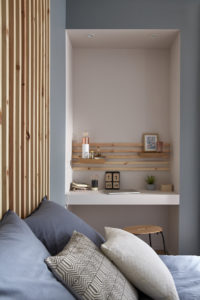 Première idée : se servir des alcôves et autres renfoncements pour créer un espace bureau ; une tablette, des tasseaux et le tour est joué !