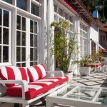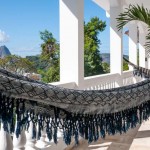 A l’intérieur, l’ancien et le moderne s’entrechoquent en faisant fuser d’étincelants éclats de couleurs, à la manière de ces vieux fauteuils chinés chez les antiquaires et retapissés avec les plus précieux tissus italiens. Pilier aux motifs végétaux verts crus jaillissant au beau milieu de la blanche « pool room », ouverte sur la piscine ; réminiscences Art déco, coloniales et années 60 dans trois suites aux vues panoramiques sur la Baie de Guanabara et le Pain de sucre. Aux murs, les imposants tableaux contemporains réalisés sur mesure par l’artiste peintre bosniaque Radmila Djapic Jovandic sont le fil rouge de ce lieu appelé à se métamorphoser en permanence, au gré des rencontres et coups de cœur du propriétaire. Mur extérieur livré à l’inspiration d’artistes-graffiteurs, exposition d’installations dans l’élégant salon principal, changement radical de couleur d’un couloir ou d’une terrasse… Il fait bon vivre dans cette exquise maison raffinée située dans un cadre idyllique et où le luxe s’ajoute au confort.