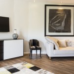 wow, le salon prend tellement bien la lumière ! J’adore les rampes d’escalier. Les plantes vertes sont bien mises en valeur avec tout le blanc, le contraste est vraiment bien travaillé !