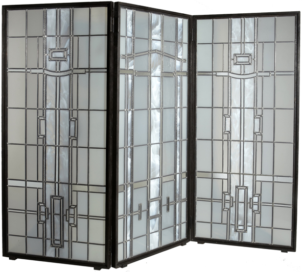 Paravent Pompeï, Cadre en acier fini à la forge et trois panneaux de vitraux. 21 000 € (Fort-Royal). Lire la suite