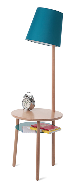 A la fois table d’appoint et lampe, Josette accompagne les moments de détente ou de lecture. Elle remplit aisément la fonction de table de nuit, guéridon ou éclairage d’appoint. En hêtre massif, tablette inférieure en métal, abat-jour 100 % coton. Dimensions : Hauteur totale : 145 cm, Diamètre : 45 cm (479 €).Lire la suite